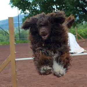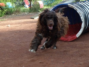 Så da vi diska i vårt første og eneste uoffisielt stevne vi har deltatt på i Hønefoss i 2010, var dette ikke uventet. Azora fullførte begge løpene, og hadde det kjempegøy underveis. Syntes de nummererte plastskiltene var supre targeter å leke med og storkoste seg på banen. Hun sjarmerte rett og slett dommeren i senk. Da det var premieutdeling ble Azora ropt opp og fikk premie – som den eneste av de diskvalifiserte. Hunden hadde skjønt det – hovedpoenget i et agilityløp er å ha det morsomt. Tror vi var en av de stolteste som gikk hjem den dagen.