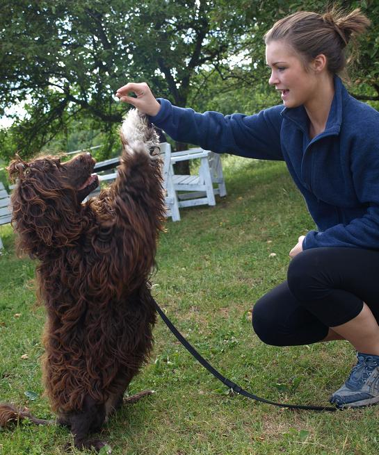 Hun var en sjarmerende liten valp, som fant på mye rart. At portisene kalles «klovnen blandt hunderasene» kan jeg godt forstå. Hun vokste fort og utviklet seg til en rolig innehund og aktiv utehund, men som alltid fulgte oss. Hun elsker familien sin, og har flere favoritter blandt venner og naboer. Alle smelter når hun tydelig viser hvor glad hun er for på se dem.
